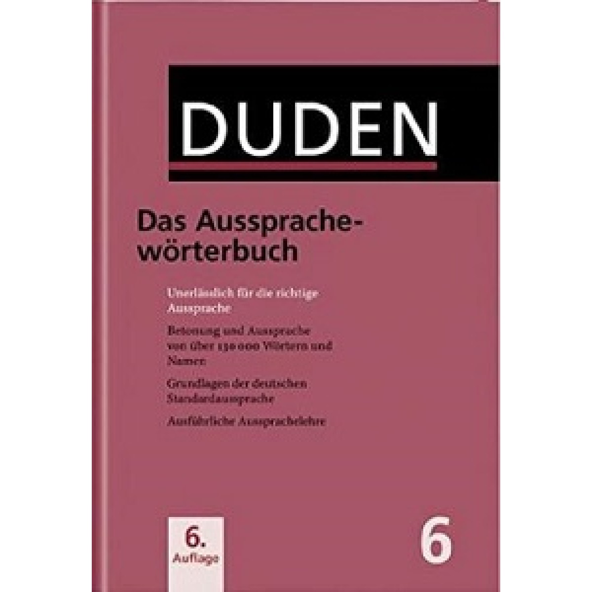 Цей 6-й том серії DUDEN містить стандартну німецьку вимову. У міжнародній фонетичній транскрипції він надає достовірну інформацію про наголос і вимову. Цей словник особливо буде цінним для тих, хто виступає на публіці.